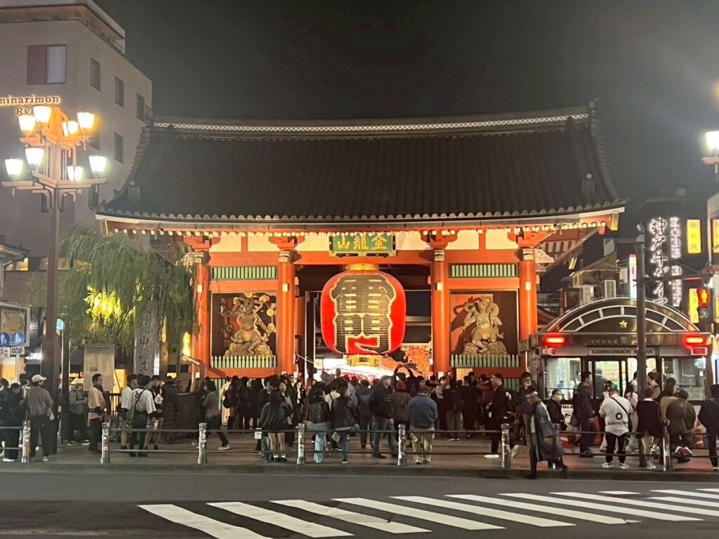 日中のにぎやかな浅草とは違い、夜は少し落ち着いた雰囲気。